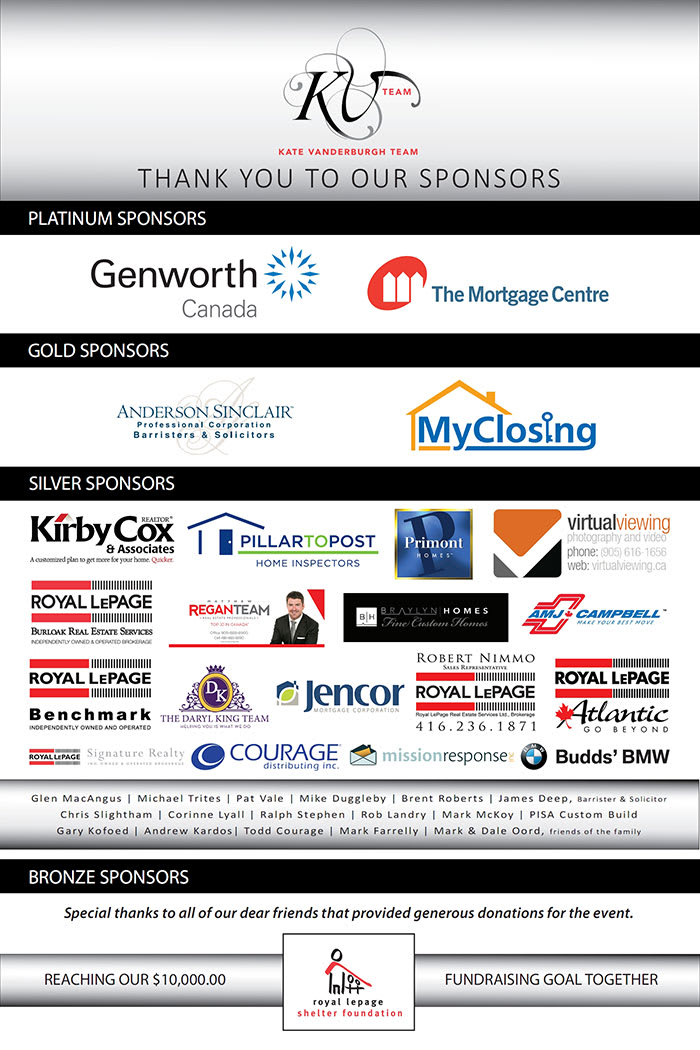 We’re proud to announce that our combined efforts allowed us to raise $17,006.00 for the Royal LePage Shelter Foundation & Halton Women’s Place!