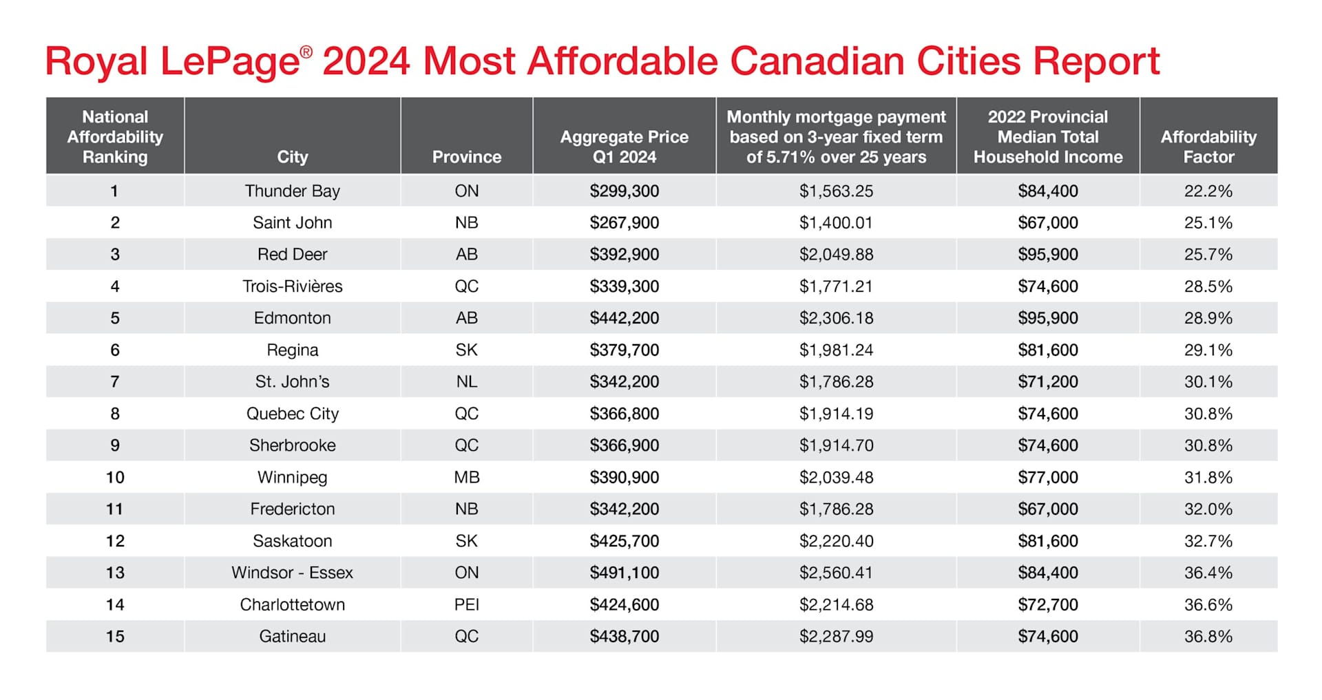 Here are a few highlights from the Royal LePage 2024 Most Affordable Canadian Cities Report: