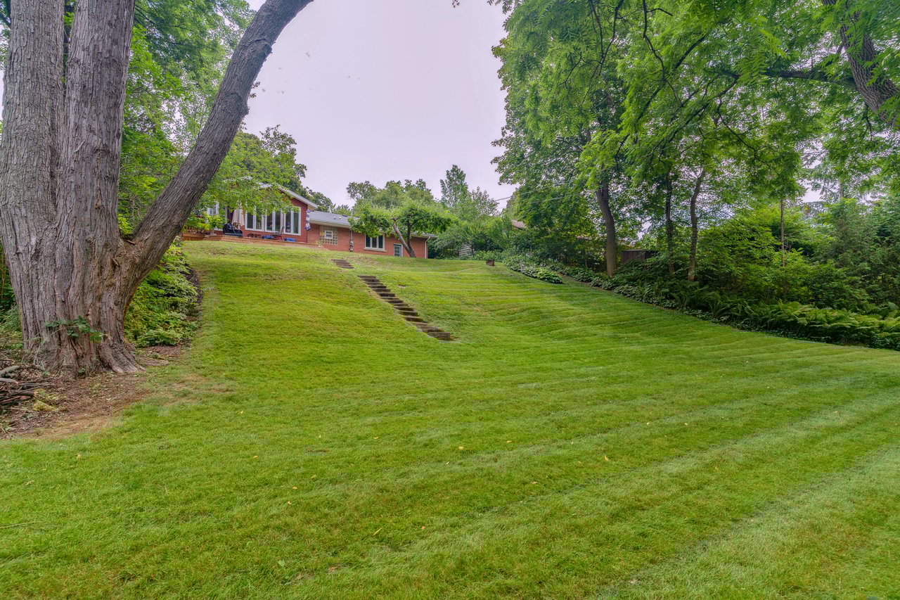 Location location location… Rare find South of Spruce perfectly nestled on a quiet street in highly sought after Shoreacres within steps to Paletta lakefront park; this spacious, tastefully updated 1,740 sq ft meticulously maintained 3-bedroom bungalow is situated on a magnificent private treed mature lot 81 by 186 ft. This one floor plan offers views and privacy plus an addition with vaulted ceilings in the kitchen and an extended family sized dining room. The bright kitchen addition with island has pot draws, gas cooktop, built-in stainless steel appliances, pot lights, an abundance of floor to ceiling windows and large eating area. Other updates include Hardwood floors in Living Room/Dining Room, Foyer, and bedrooms, an updated 4pc bathroom with glass block window, upgraded trim and plaster moldings. The basement is finished with a large open rec room, laundry rm, 3pc bathroom and 2 huge storage areas. Finally, rear and side doors from the kitchen lead to a 2 tier entertaining sized deck and interlocking patio overlooking the massive private treed yard. Great potential to renovate, custom build or live in, in South Burlington. Close to the lake, great amenities, some of the best schools (Nelson high school district), parks, trails, shopping, restaurants, and easy highway access. A true lifestyle. A/C and furnace 2017.